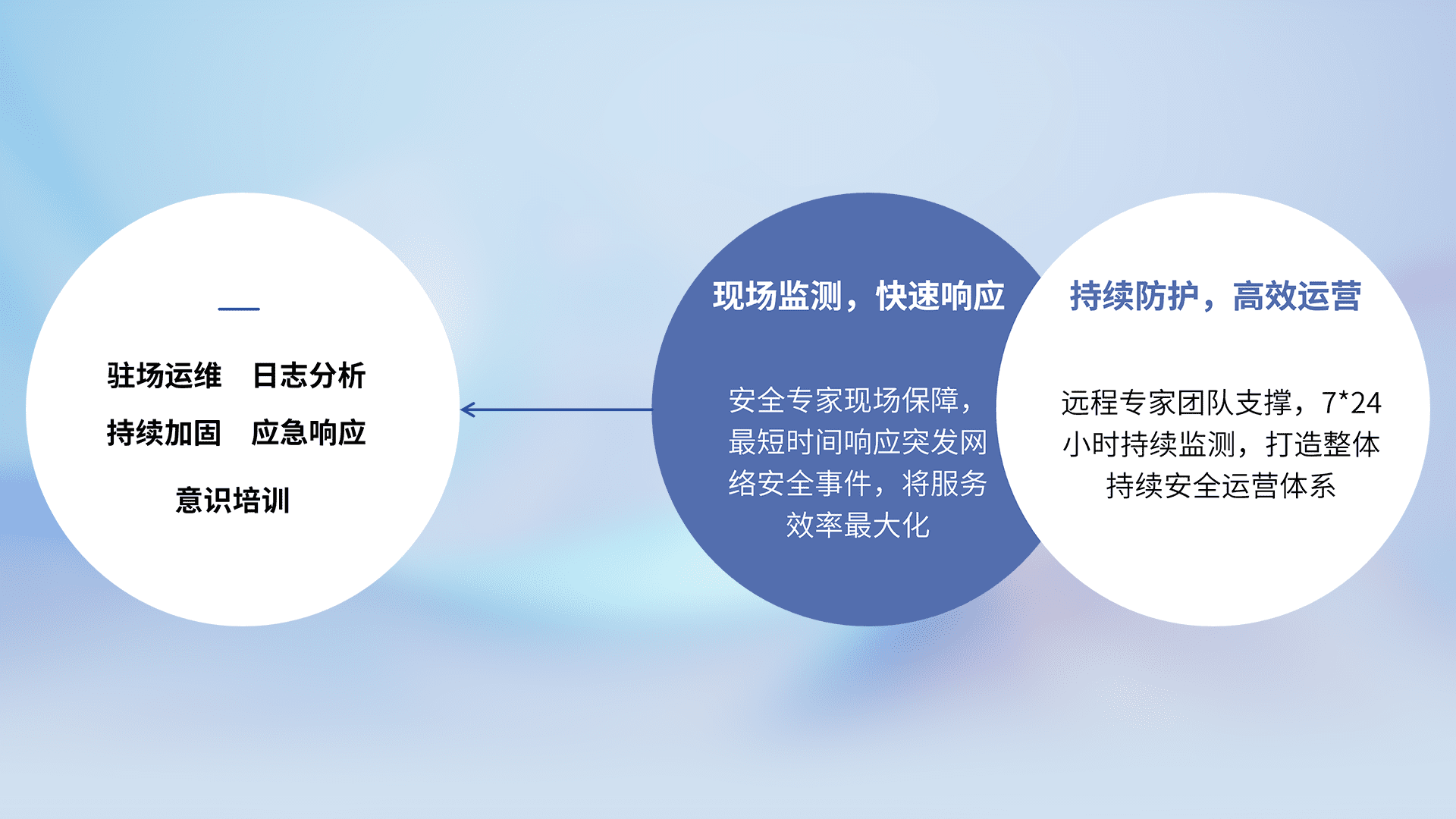 7X24小时持续监测安全事件,保持安全策略有效性,降低资产脆弱性风险,,,精准拦截黑客攻击,,减少被黑客利用的机会,,,,第一时间遏制,,,降低损失。。。。